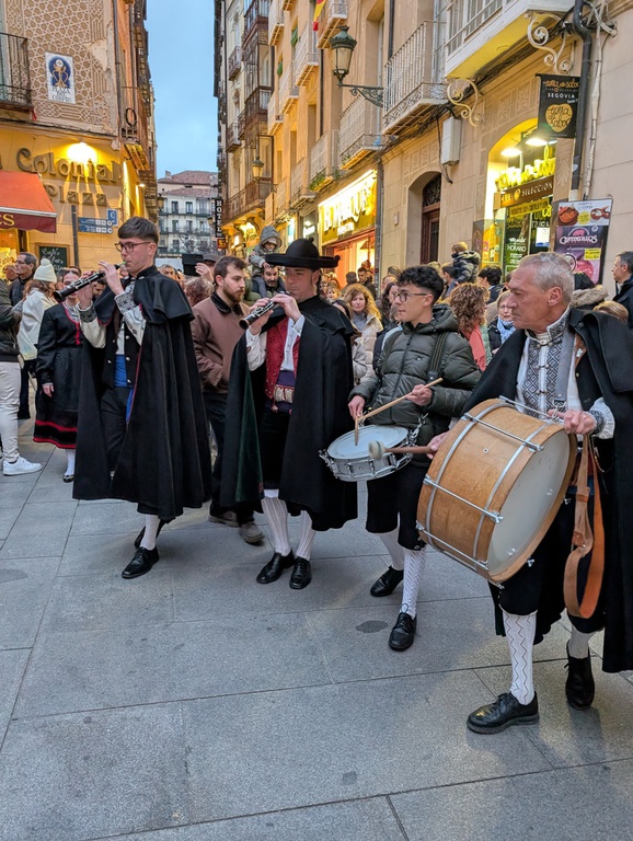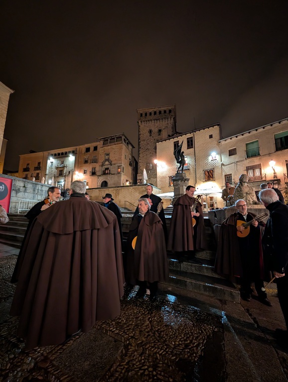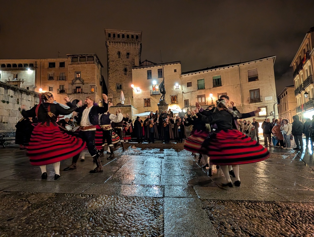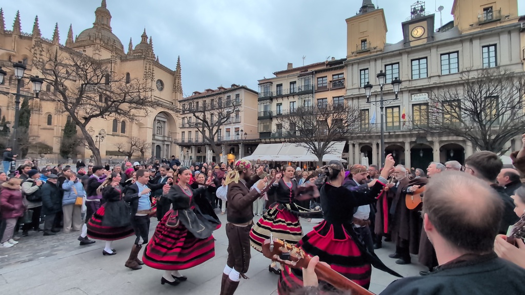 Desde las 18:30 h. y empezando en la Plaza Mayor, bajaremos hasta la Plaza del Azoguejo cantando y bailando y, por qué no, entrando en los bares para reponer fuerzas.