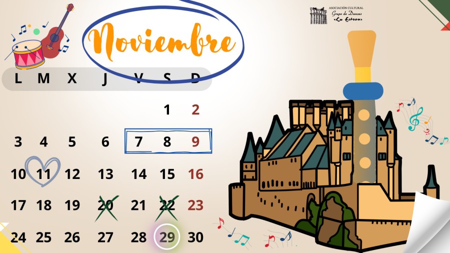 - Sábado, 29 de noviembre, 20:00 h: X Muestra de Dulzaina Ciudad de Segovia.