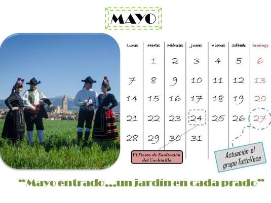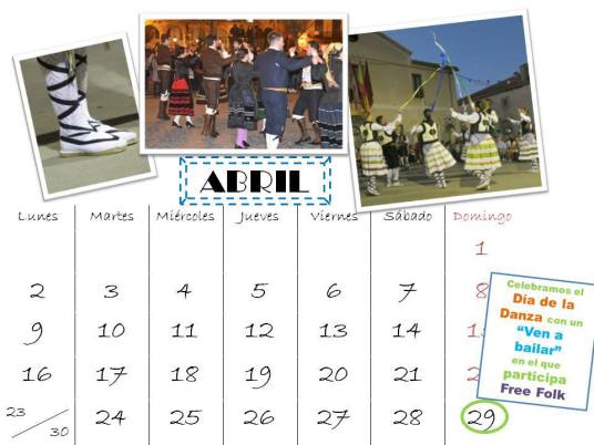 Os dejamos el calendario de este mes de abril, y os invitamos a acompañarnos el domingo 29, a las 12:30 h. en la Plaza Mayor de Segovia, en una nueva edición del "Ven a bailar".