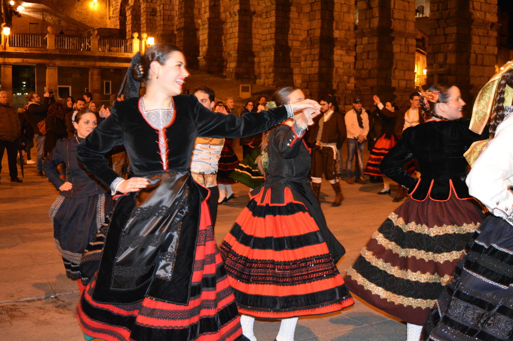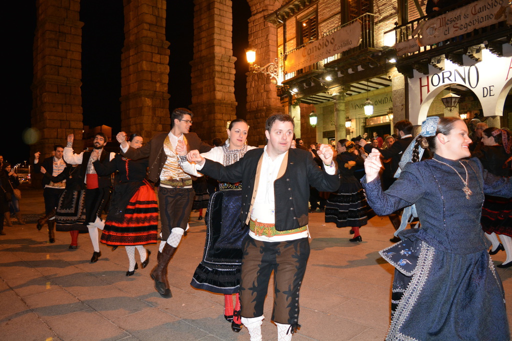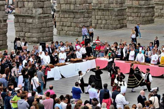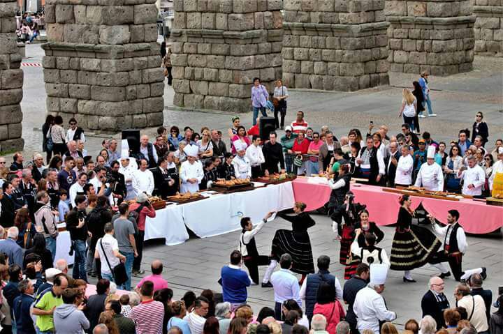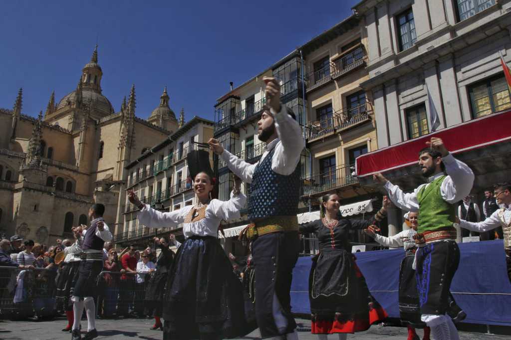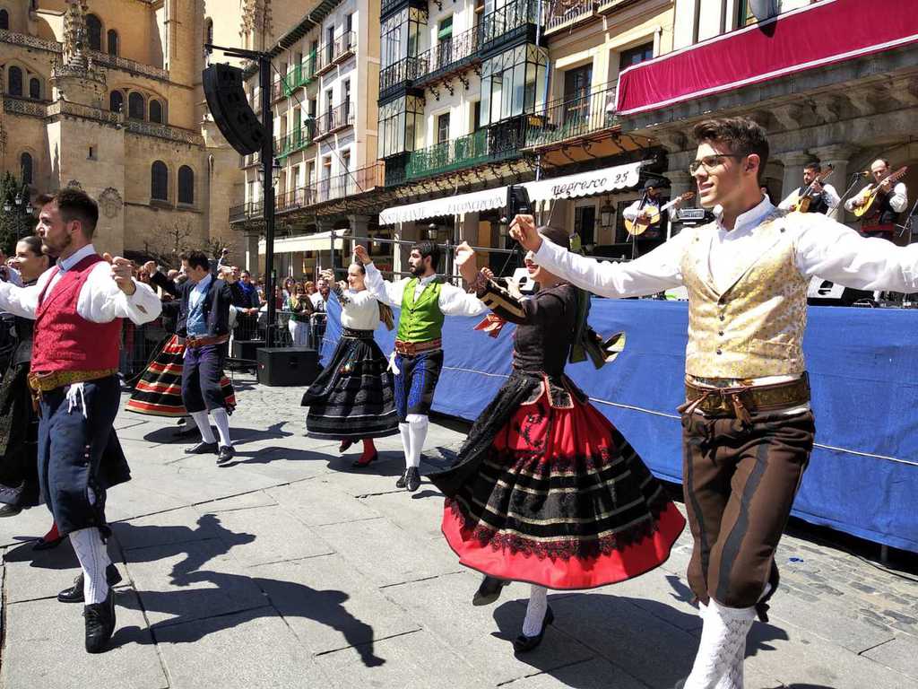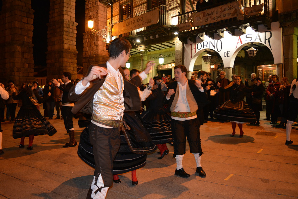 Empezamos el jueves 24, bailando en la fiesta de la exaltación del Cochinillo segoviano, en la plaza del Azoguejo.