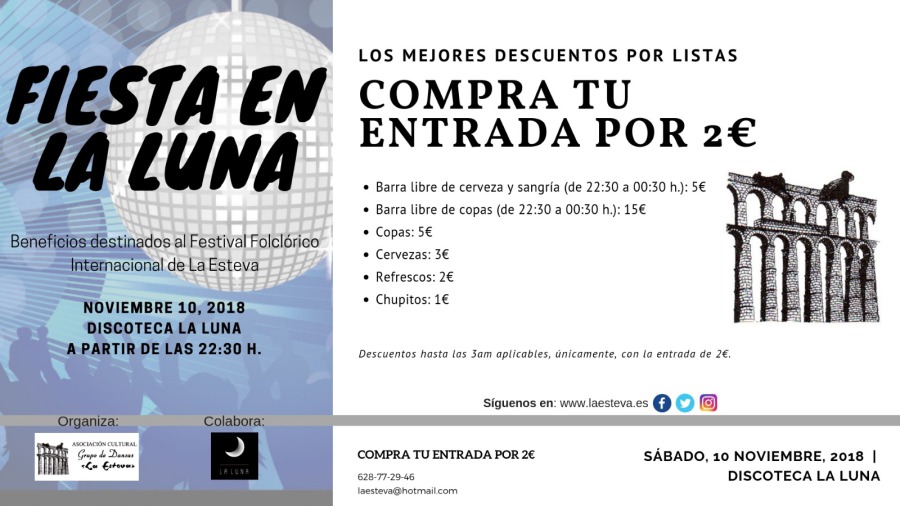 También os recordamos que el sábado 10 celebramos una fiesta en La Luna para pasar una buena noche todos juntos.