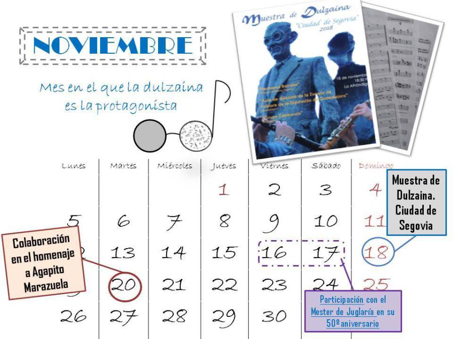 Aquí os dejamos las actuaciones previstas para este mes de noviembre, el mes del maestro Agapito, por ello, dos de los eventos son en su homenaje.